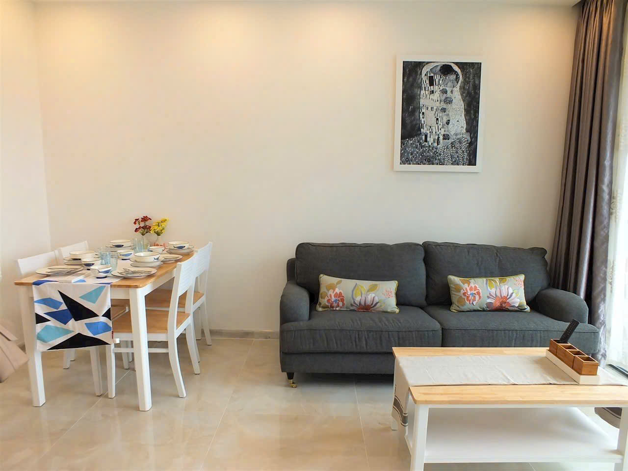 Căn hộ được trang bị đầy đủ nội thất, thiết kế đơn giản nhưng ấm cúng, mang lại cảm giác như ở nhà